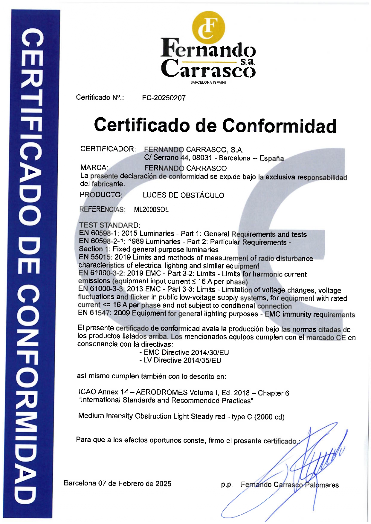 Máxima intensidad lumínica > 2000 cd